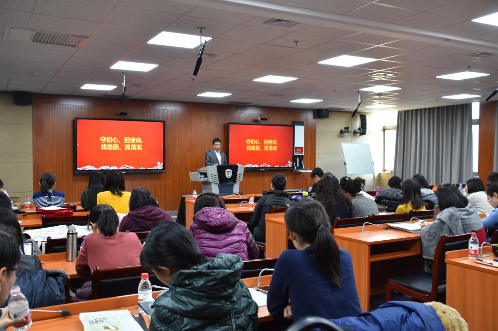 蔡鸿首先向全体教职工做了本学期学院主题教育成果专项汇报,并全面总结了学院在教学、教师发展、行政、科研、工会以及学生工作等方面的各项工作,赞扬了学院教师本学期所取得的可喜成绩和无私奉献精神,并在会上分享了永利官网援疆教师苏乐舟老师的新年寄语。