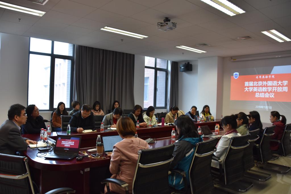 11月1日下午,yl23411永利集团官网在西校区国际大厦1016会议室召开“首届yl23411永利集团官网大学英语教学开放课堂暨研讨会”总结会。教务处处长李莉文、外研社高等英语教育出版分社社长助理冯涛、yl23411永利集团官网常务副院长蔡鸿、副院长仵胜奇及学院参加开放课堂的教师代表共计23人参加了会议。会议由蔡鸿主持。