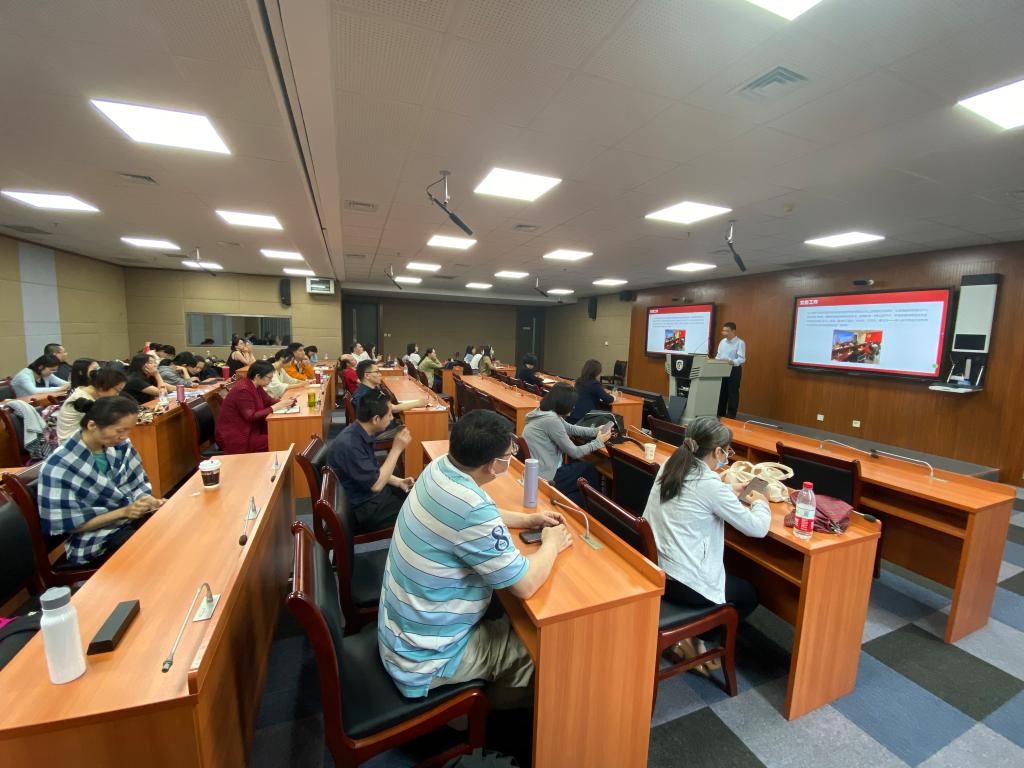 蔡鸿在大会上和与会教师分享了一线专英教师恪尽职守、甘当老黄牛的一个个感人事例,高度赞扬教研室主任、课型组长、以及每一位任课教师兢兢业业、一丝不苟的工作态度,并对克服重重困难,坚守岗位,服务集体的教师表示深深的感激和敬意。学院表彰了本学期为学院党建、教学、科研、行政工作等各个方面做出突出贡献的个人。最后,全体与会教师观看了由学院教师和民族预科班学生共同参加“青春向党”合唱比赛的视频歌曲《十送红军》,再次被我党光辉的历史和永利官网师生团结一心、奋发向上的精神所鼓舞和感动。