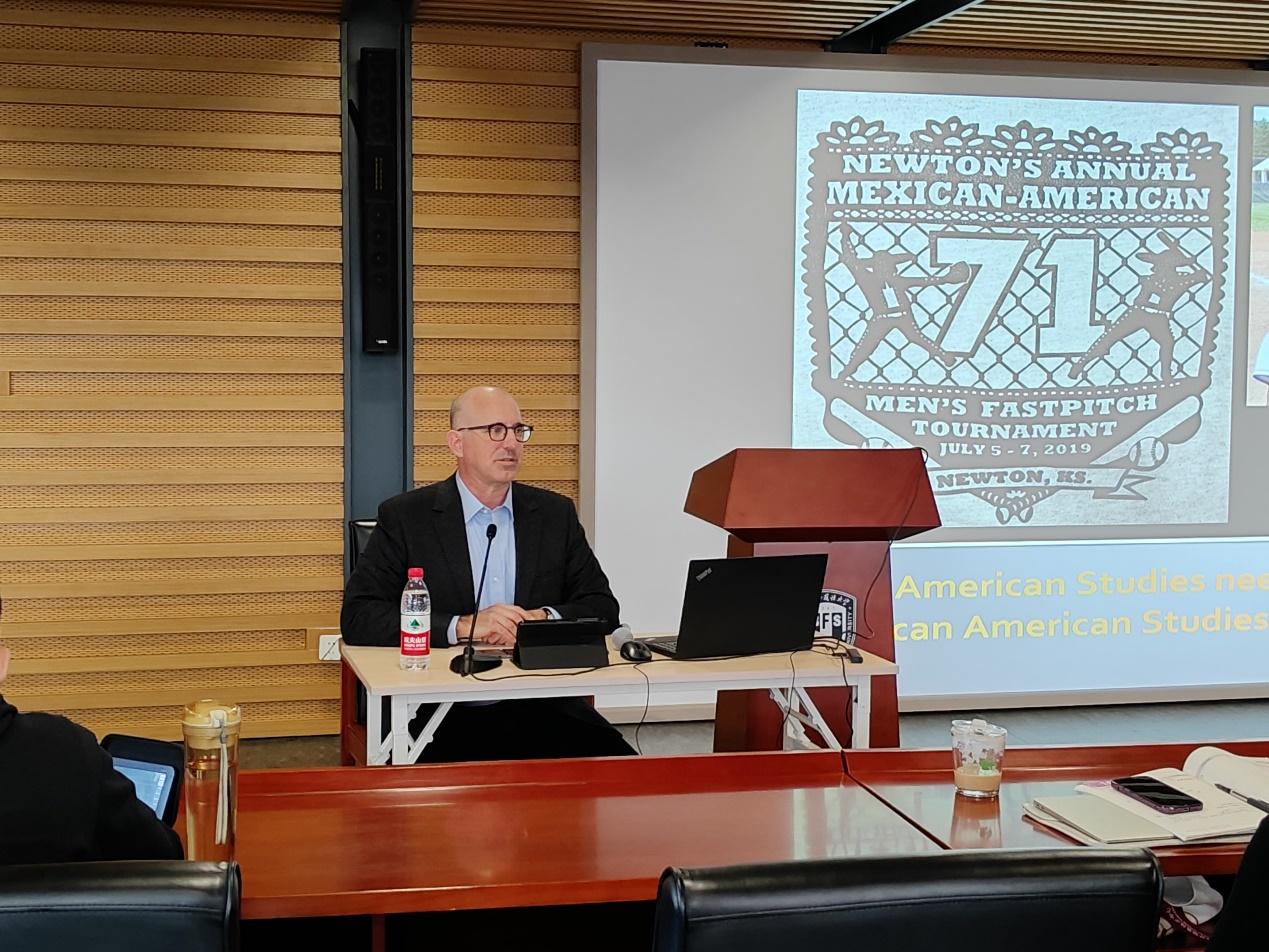 在中美“旧金山愿景”实施一周年即将到来之际,为加强中美人文交流,促进美国文化研究走向深入,10月25日,yl23411永利集团官网特邀美国堪萨斯大学美国学系主任、美国著名墨西哥裔民族志专家本·查佩尔(Ben Chappell)教授莅临“专英讲堂”,为全校师生做了题为“美国研究中的墨西哥裔美国人研究”的学术讲座。来自yl23411永利集团官网、英语学院、国际关系学院等兄弟院系师生近60人参加讲座。讲座由yl23411永利集团官网副院长仵胜奇主持。