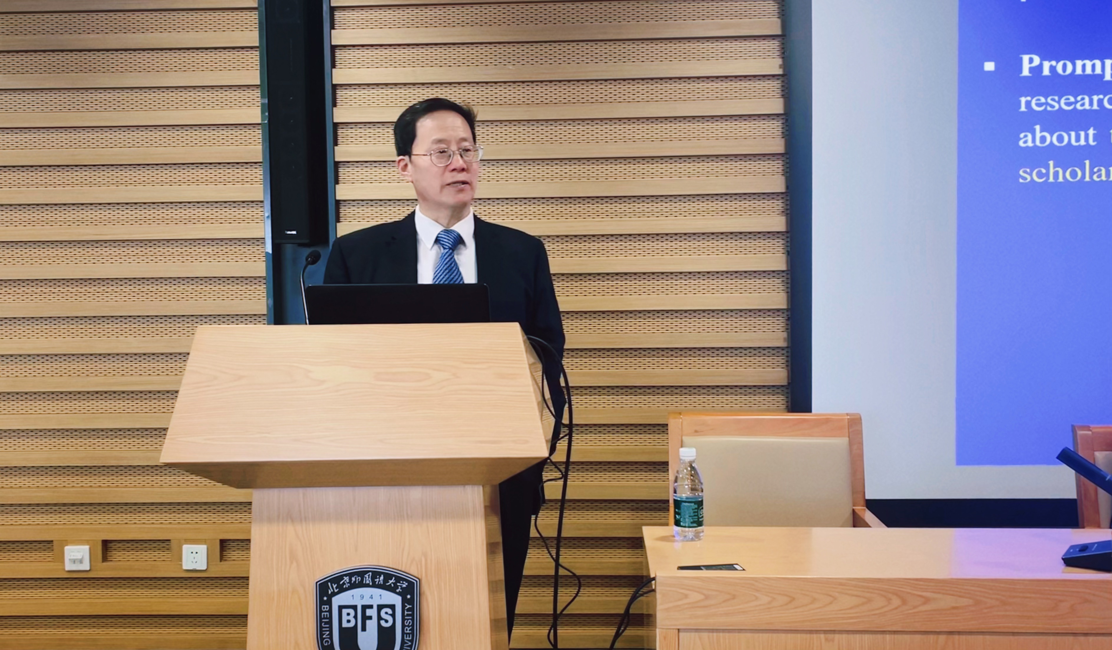 蔡基刚教授是国内外知名英汉对比语言学专家,曾任教育部大学外语教学指导委员会副主任、专门用途英语专业委员会会长等职,对人工智能工具对学术研究的深刻影响研究颇深。讲座针对期刊学术论文及硕博研究生毕业论文撰写过程中人工智能工具使用时出现的一系列问题,提出了切实可行的使用规范、策略和标准,对于确保学术研究的健康发展,具有重要的启发意义。