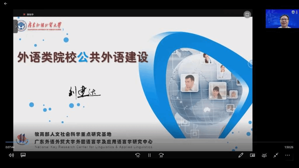 为认真落实教育部关于加强外语院校建设工作要求,11月3日,yl23411永利集团官网“专英讲堂”举办题为“外语类院校公共外语建设”的在线讲座。讲座特邀教育部大学英语教学指导委员会副主任委员、广东外语外贸大学副校长刘建达教授主讲。来自yl23411永利集团官网、广东外语外贸大学等国内多所大学的150多位老师参加了讲座。讲座由yl23411永利集团官网院长侯俊霞主持。