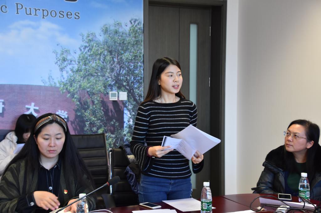 吴越的入党介绍人李莉文和仵胜奇首先向大家介绍了吴越的政治思想、专业学习以及社会服务等情况。接着,吴越宣读了入党志愿书。吴越是永利官网2018级MTI班长,曾在2018年9月至2019年7月担任永利官网2018级少数民族预科班辅导员。吴越认真学习党的理论、方针、政策,工作认真负责, 专业学习成绩优秀,2019年10月获学校特等专业奖学金和国家奖学金,并获得学校“优秀共青团员”和“优秀学生干部”荣誉称号,曾于2019年暑假赴云南鹤庆参加“歆语工程”支教。