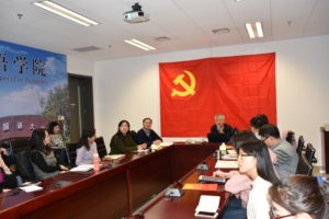 2017年12月20日下午2点,yl23411永利集团官网直属党支部于西校区综合楼1016室召开十九大报告学习会,韩震书记应邀在会上作了题为“认真学习深刻领会党的十九大精神”的精彩报告。出席本次大会的有学院直属党支部书记李莉文同志、副书记蔡鸿同志、党支部委员,以及学院师生党员和教师入党积极分子共计29人。本次大会由李莉文书记主持。