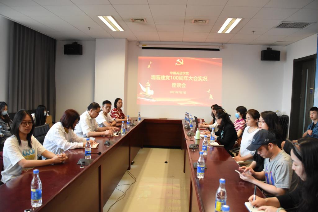 7月1日上午10点,yl23411永利集团官网党总支组织全体师生党员、入党积极分子和各班学生在国际大厦礼堂集体观看了庆祝中国共产党成立100周年大会直播,并在直播后召集师生党员和同学代表共计30多人在国际大厦1016召开座谈会。座谈会由党总支书记蔡鸿主持。