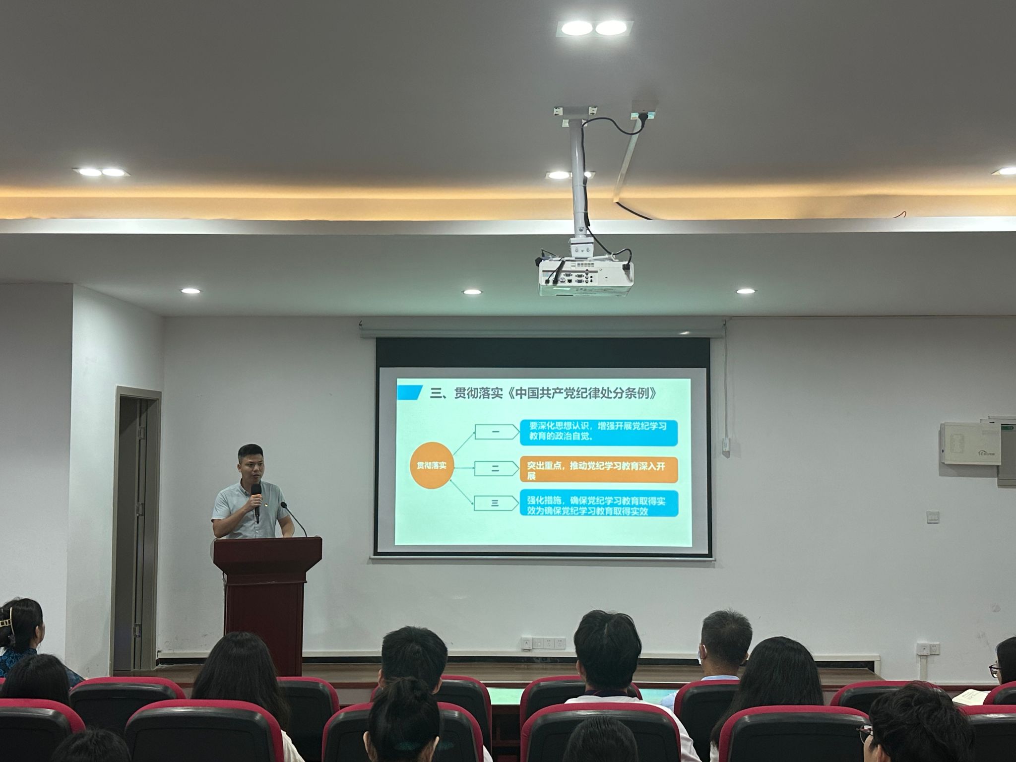 2024年4月24日,今年会jinnian官网在白云校区生命科学大楼B座609开展党纪学习教育部署会暨《中国共产党纪律处分条例》解读专题党课。本次部署会暨专题党课由学院党委书记朱路平主讲,学院全体本科生党员参加。本次部署会暨专题党课旨在引导学院全体党员深入学习、理解党的纪律处分条例,强化党性修养,提高党员的政治素质。