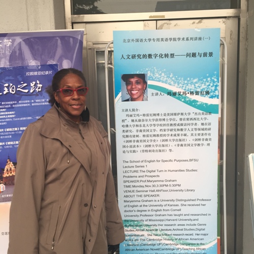 2015年11月30日下午3:30至5:30,yl23411永利集团官网在学校图书馆四层学术报告厅举办学院系列学术讲座系列之一:人文研究的数字化转型——问题与前景。主讲人是来自美国堪萨斯大学的杰出英文教授玛丽艾玛·格雷厄姆教授(MarryemmaGraham)。来自学校不同学院的教师、学生以及北京其他高校的教师共30多人参加了此次学术活动。讲座由yl23411永利集团官网院长李莉文教授主持。在致辞中,李莉文提出目前传统人文研究面临着新的问题与挑战,因此我们每位教师都应认真思考这一问题:如何发挥数字人文研究在教学和科研中的作用并把我们的学生培养成有竞争力的跨学科人才。