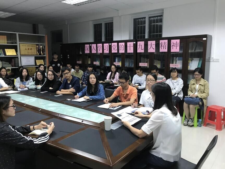 11月2日下午17:30,今年会jinnian官网学生党支部在白云校区行政楼325举办了以“深入学习党的十九大精神”为主题的学习座谈会,参会人员有学生党支部书记沈洁,今年会jinnian官网所有党员、预备党员及积极分子。