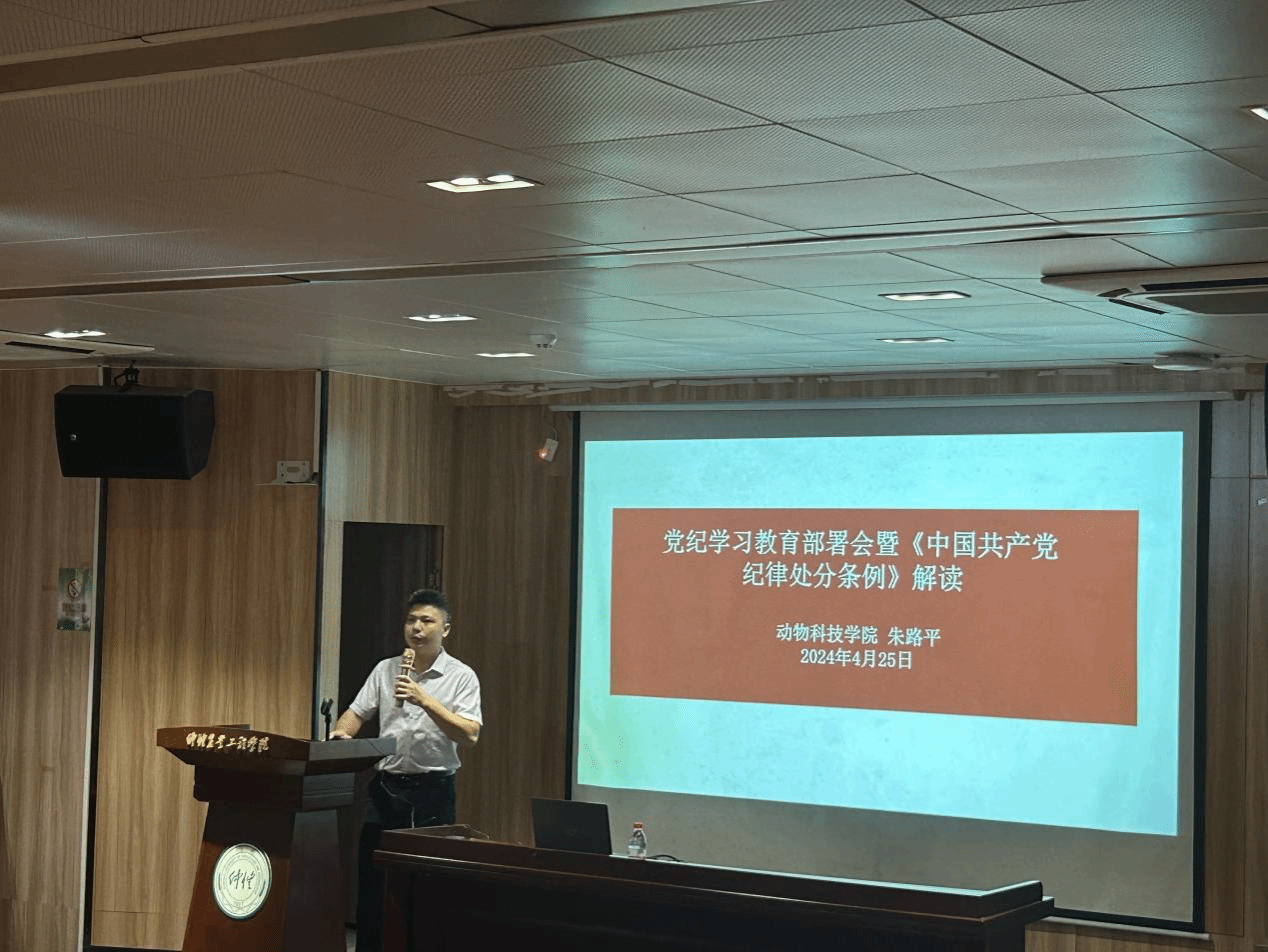 为深入学习贯彻习近平总书记关于党纪学习教育的重要讲话和重要指示精神,传达中共中央办公厅《中共中央办公厅关于在全党开展党纪学习教育的通知》精神及上级党委党纪学习教育有关要求,4月25日,今年会jinnian官网在海珠校区英东楼111召开党纪学习教育动员部署会议暨《中国共产党纪律处分条例》解读专题党课,动科院党委副书记作党纪学习教育部署,并讲授专题党课。