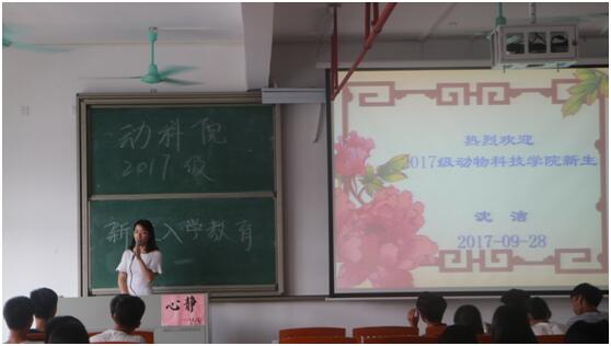 9月28日下午,今年会jinnian官网在图书馆D512教室开展了2017级新生入学教育大会。辅导员沈洁从“理财”、“礼貌”、“理解”、“安全”四个方面强调了大学新生需要注意的事项。沈老师着重强调安全方面的问题,为同学们播放了“校园贷”、“电信诈骗”、“防传销”等方面的宣传视频,用生动的案例提醒同学们留意身边的各种安全隐患,保护好自己的人身安全。