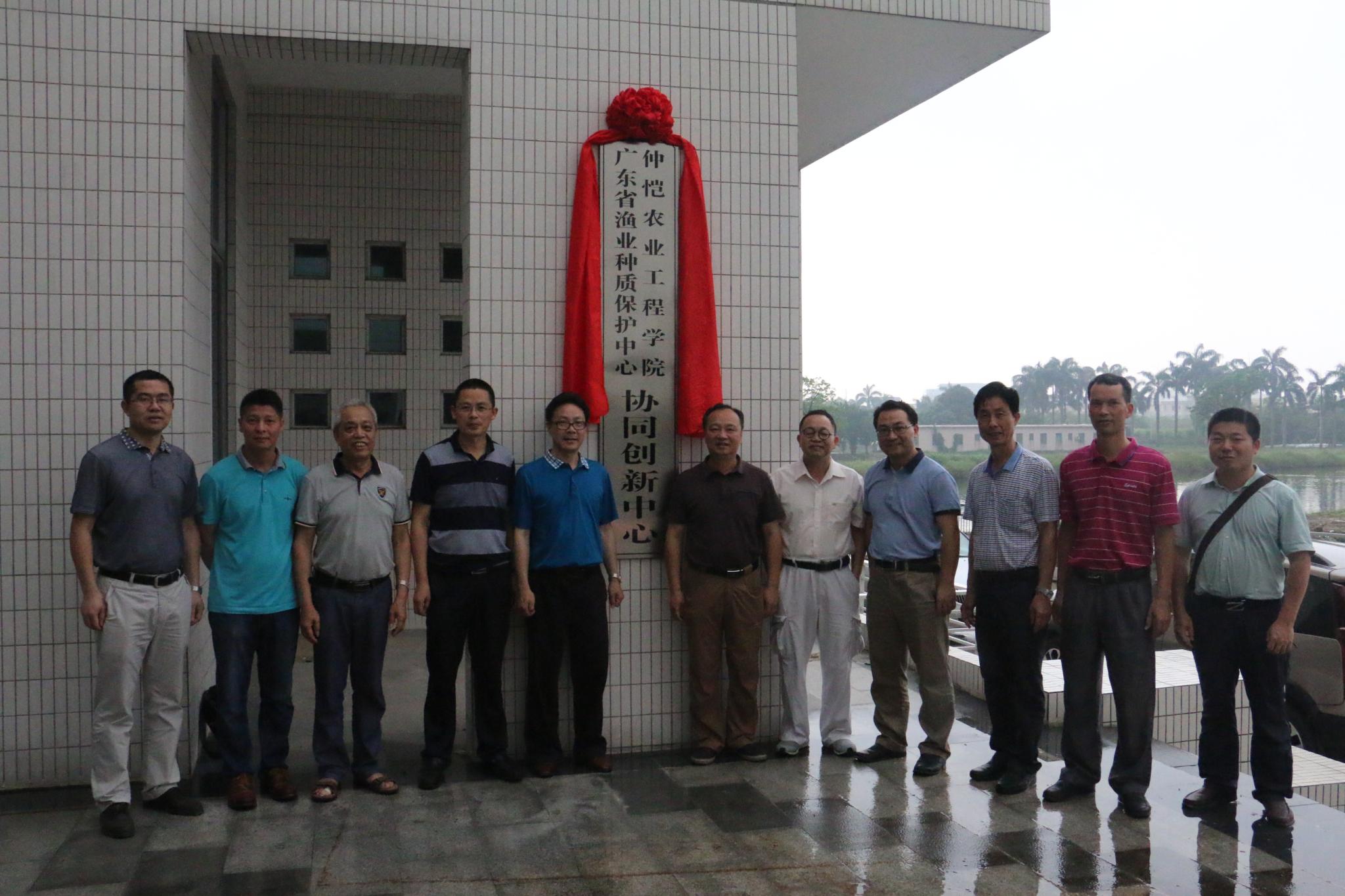 2017年5月22日下午,今年会jinnian官网与广东省渔业种质保护中心合作共建的“协同创新中心”,在位于广州市番禺区的广东省渔业种质保护中心正式成立,学校副校长田允波、渔业中心主任刘付永忠代表双方单位揭牌。出席揭牌仪式的还有广东水产学会会长吴灶和,仲恺领军学者林蠡教授、今年会jinnian官网党总支书记曾献尼、副院长黄运茂、计算科学学院副院长杨灵,渔业中心副主任黄如寿、陈辉崇,番禺海洋与渔业局处长吴瑞荣,广州华大锐护科技有限公司董事长殷波、总经理舒锐等。