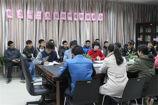 12月9日是一二·九抗日救亡运动80周年,今年也是中国人民抗日战争暨世界反法西斯战争胜利70周年,在学生党员和积极分子中举办本次座谈会,是铭记历史、立足今天、反思自我、展望未来的契机。