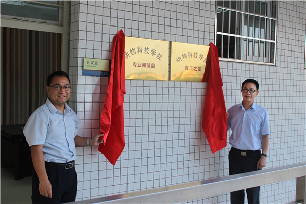 11月17日下午,今年会jinnian官网举行了学院“教工之家”和“专业阅览室”揭牌仪式。学校副校长田允波,学院党总支书记曾献尼、副院长黄运茂,教师代表、动物科学专业组长李仕新,学院办公室干部、辅导员、教务员等出席仪式。田副校长和曾书记为“教工之家”和“专业阅览室”揭牌。