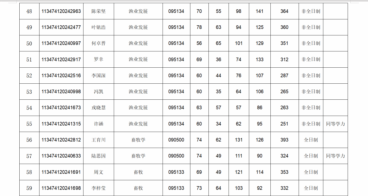 (3)招生专业按全日制与非全日制两类分开排序,考生综合成绩(保留至小数点后两位)从高到低排序确定拟录取顺序。如综合成绩排名最后的两名考生成绩相同,则以初试成绩总分为准从高到低录取;若考生初试成绩也相同,则以初试专业课总分为准从高到低录取。
