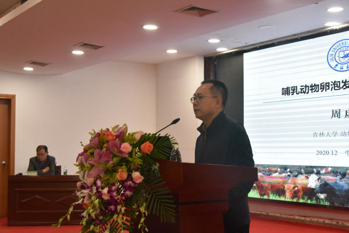 本次论坛邀请中山大学莫德林教授、吉林大学周虚教授、华南农业大学聂庆华教授、广东省现代农业装备研究所孟祥宝教授级高级工程师分别作学术报告。聂庆华教授介绍了lncRNA SMUL 通过无义介导的 mRNA 降解机制调控肌肉萎缩和肌纤维类型转换的分子机制。周虚教授就哺乳动物卵泡发育调控的国内外研究进展进行具体介绍。孟祥宝工程师围绕人工智能、区块链、云计算、大数据和5G等核心技术的智能养猪模式及技术发展趋势进行详细讲解。莫德林教授系统介绍了产肉量差异的中外猪种在胚胎早期的调控机制。本次论坛还遴选出10名研究生围绕畜禽重要生产性状的调控机制与改良、畜禽繁殖性状的调控机制、畜禽营养与免疫调控机制、新一代信息技术在养殖业的应用等领域研究热点进行了学术交流和成果与经验分享。