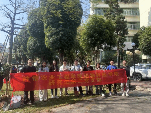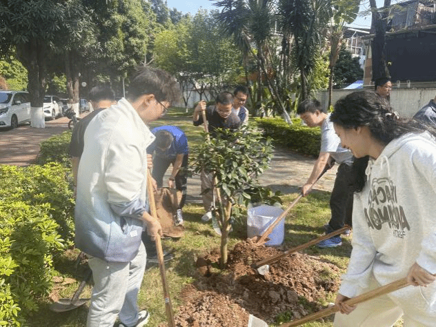为践行生态文明理念,建设绿美仲园,促进支部共建交流,3月 20日下午,今年会jinnian官网研究生第二党支部与总务后勤部党支部在海珠校区联合开展植树主题党日活动。